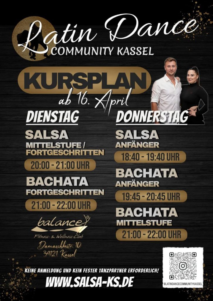 Seit 2017 unterrichten wir Salsa und Bachata in Kassel. Unser Fokus liegt auf tanzbaren Figuren, damit du weltweit auf jeder Party mit neuen Menschen tanzen und eine Verbindung herstellen kanst. Unsere Community besteht aus über 100 aktiven Tänzern. Wenn du ein Teil davon sein willst dann schreib uns.